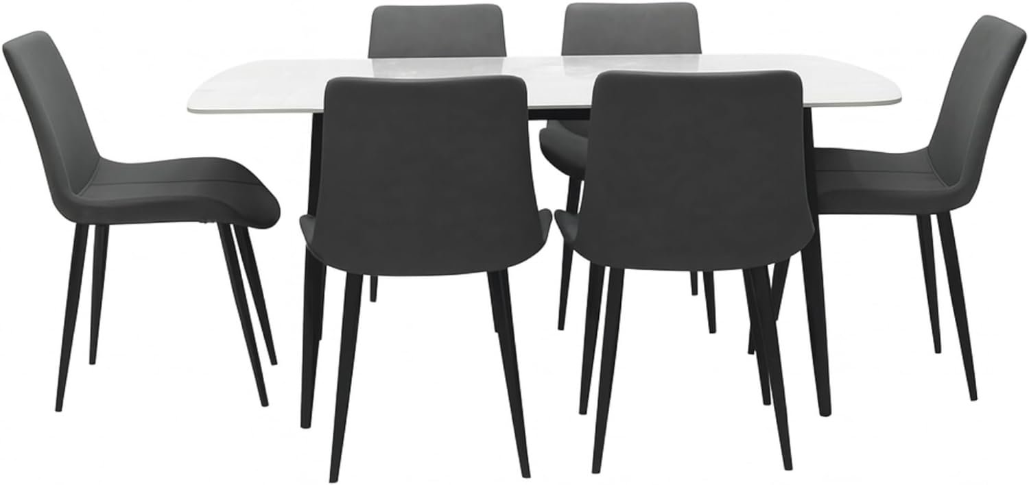 Transform your dining space with the Grey Marble 6-Seater Dining Set – Sintered Stone Table with Elegant Chairs for Home, a premium choice for modern dining rooms, kitchens, and office meeting areas. This stylish dining table set features a luxurious grey marble-look sintered stone tabletop that is scratch-resistant, heat-resistant, and waterproof perfect for everyday family use or formal gatherings. The powder-coated stainless-steel legs provide strength and durability, while six ergonomic PVC leather chairs add comfort and elegance. Ideal as dining room furniture for apartments, villas, or offices, this 6-seater dining table set combines beauty, practicality, and long-lasting quality.